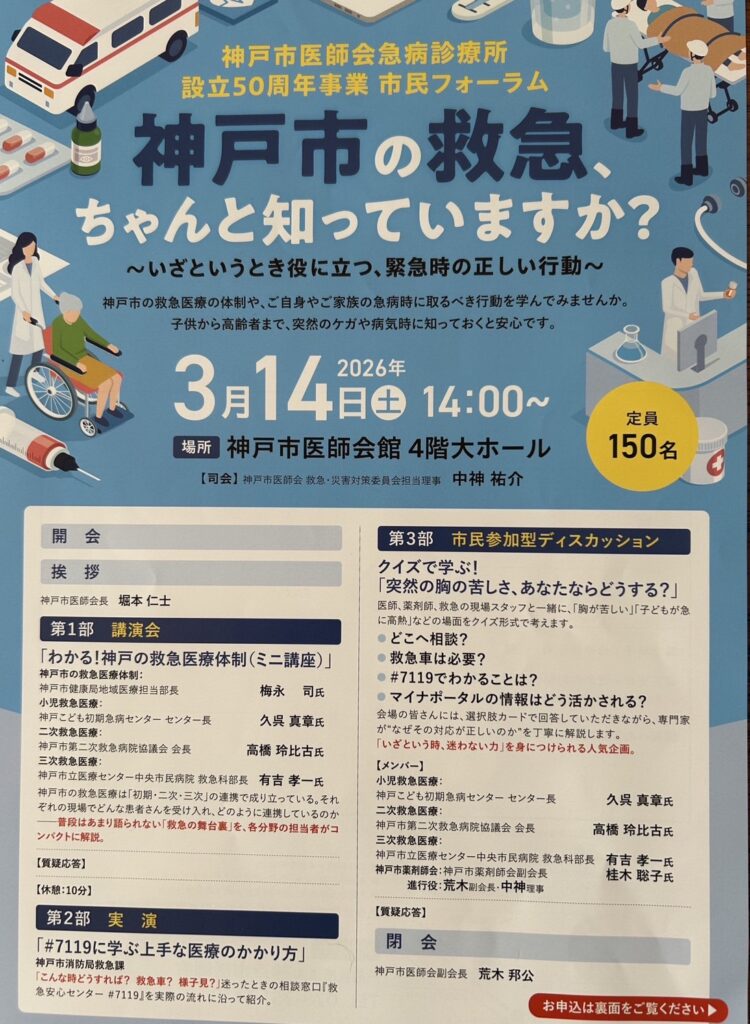 突然の病気やけがに備え、救急医療の体制や相談先、適切な受診方法を学ぶイベントです。クイズ形式のディスカッションなどを交え、日常生活に役立つ情報をわかりやすく解説します。